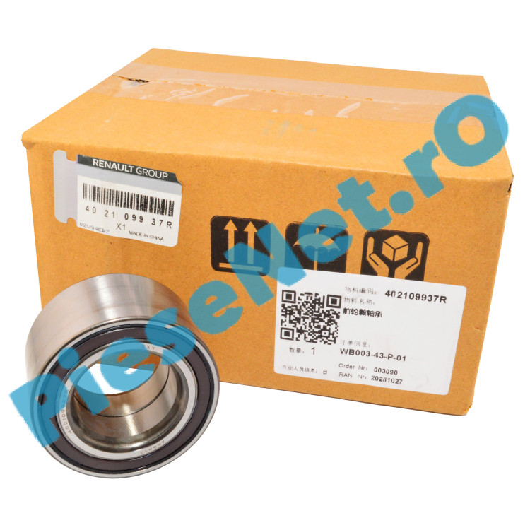 - Rulmentul față Original Renault 402109937R este piesa dedicată pentru Dacia Spring, proiectată pentru susținerea corectă a butucului roții și pentru asigurarea unei rulări line, stabile și sigure.