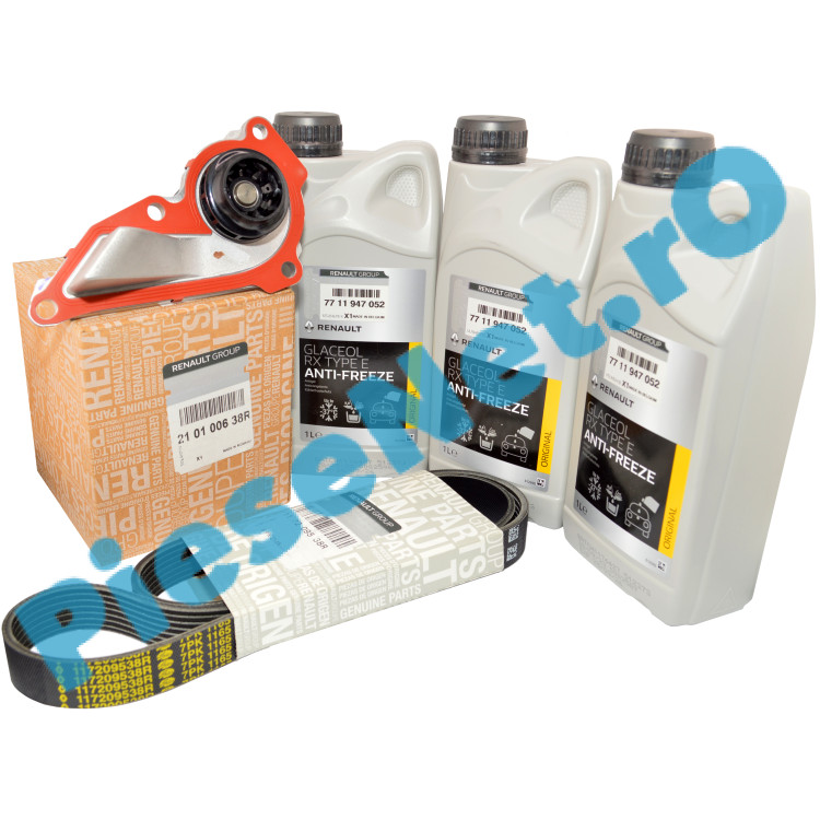 pachet revizie pompa apa logan 3, pompa apa 1.0 tce duster 2, curea accesorii renault 117209538R, garnitura pompa apa 210142938R, antigel glaceol rx tip e renault, revizie sistem racire sandero 3, piese originale pompa apa dacia, 210100638R, 7711947052